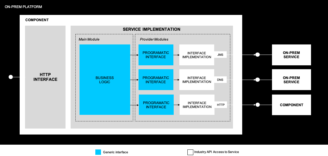 More importantly, you need to have your application or service running on-prem? Even easier, re-write those interfaces using supported industry APIs (i.e. JMS, MQTT) and de-facto standard providers (i.e. Hibernate for JDBC).